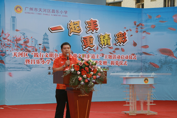 昨日,天河区“践行文明公约,争做文明东道主”暨昌乐小学“梦想·亚运”大型浮雕受赠、揭幕仪式在昌乐小学举行。仪式上,广州市政协委员、骨雕艺术家苏忠阳向昌乐小学捐赠了名为“梦想·亚运”的大型浮雕作品。