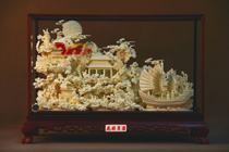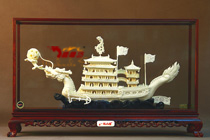 名称:《一帆风顺》规格:47.0*16.6*32.0cm(长*宽*高cm) 材质:酸枝木+玻璃罩+骨瓷雕包装:单件皮箱