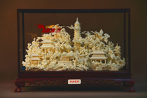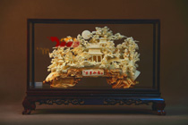 名称:《更上一层楼》规格:53.0*21.5*37.0cm(长*宽*高cm) 材质:酸枝木+玻璃罩+骨瓷雕包装:单件皮箱