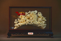 名称:《荣华富贵》规格:47.0*16.6*32.0cm(长*宽*高cm) 材质:酸枝木+玻璃罩+骨瓷雕包装:单件皮箱