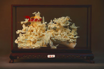 名称:《广州传说》规格:47.0*16.6*32.0cm(长*宽*高cm) 材质:酸枝木+玻璃罩+骨瓷雕包装:单件皮箱