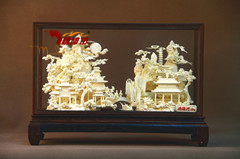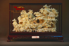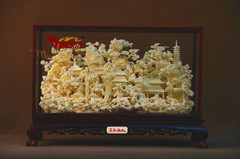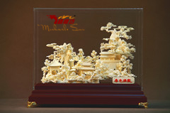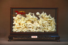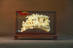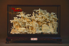 名称:《锦绣河山》规格:47.0*16.6*32.0cm(长*宽*高cm) 材质:普通木+玻璃罩+骨瓷雕包装:单件皮箱