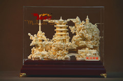 名称:《武汉印象》规格:30.0*15.0*20.0cm(长*宽*高cm) 材质:普通木+玻璃罩+骨瓷雕包装:单件皮箱
